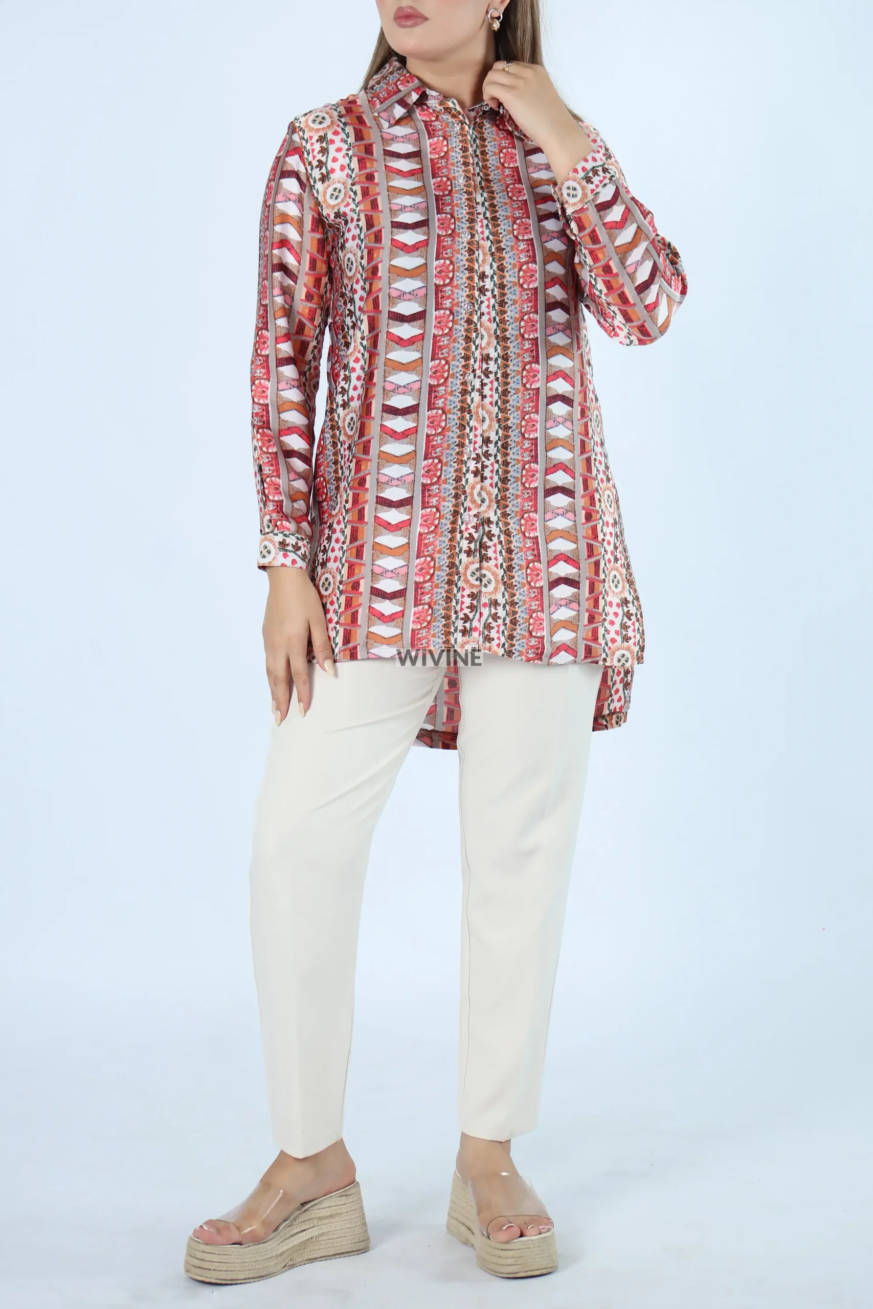 Chemise imprimée en satin de soie