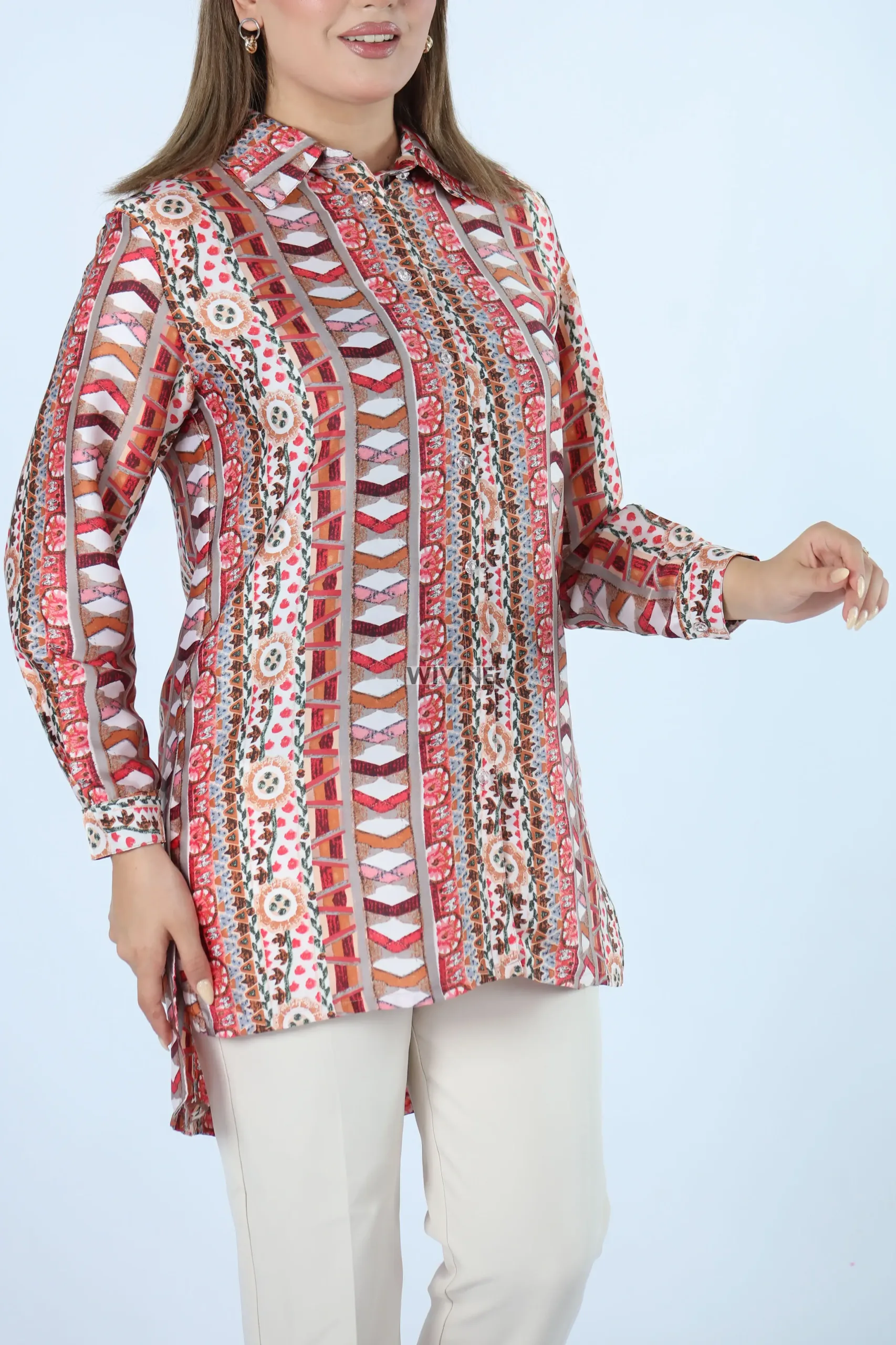 Le mannequin mesure 173 cm et porte l’article en taille M