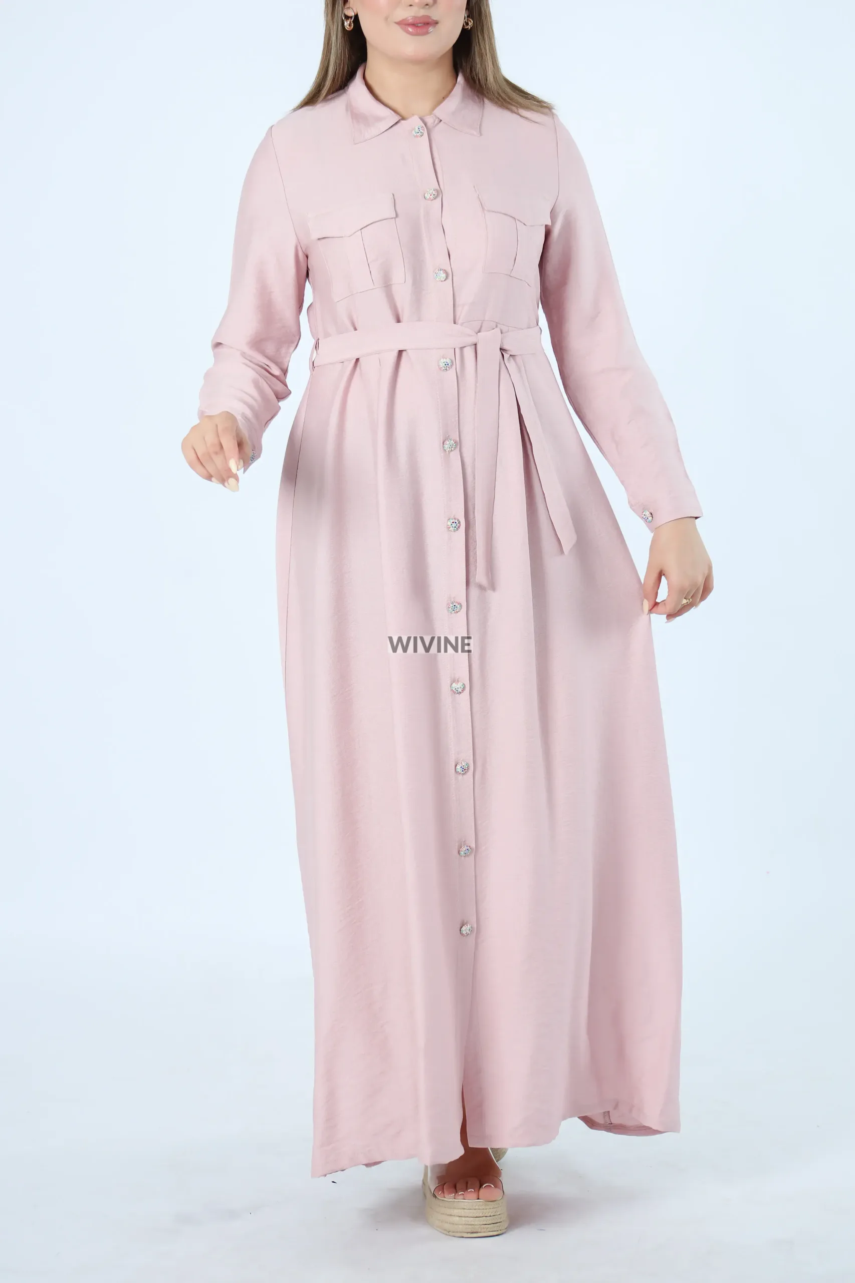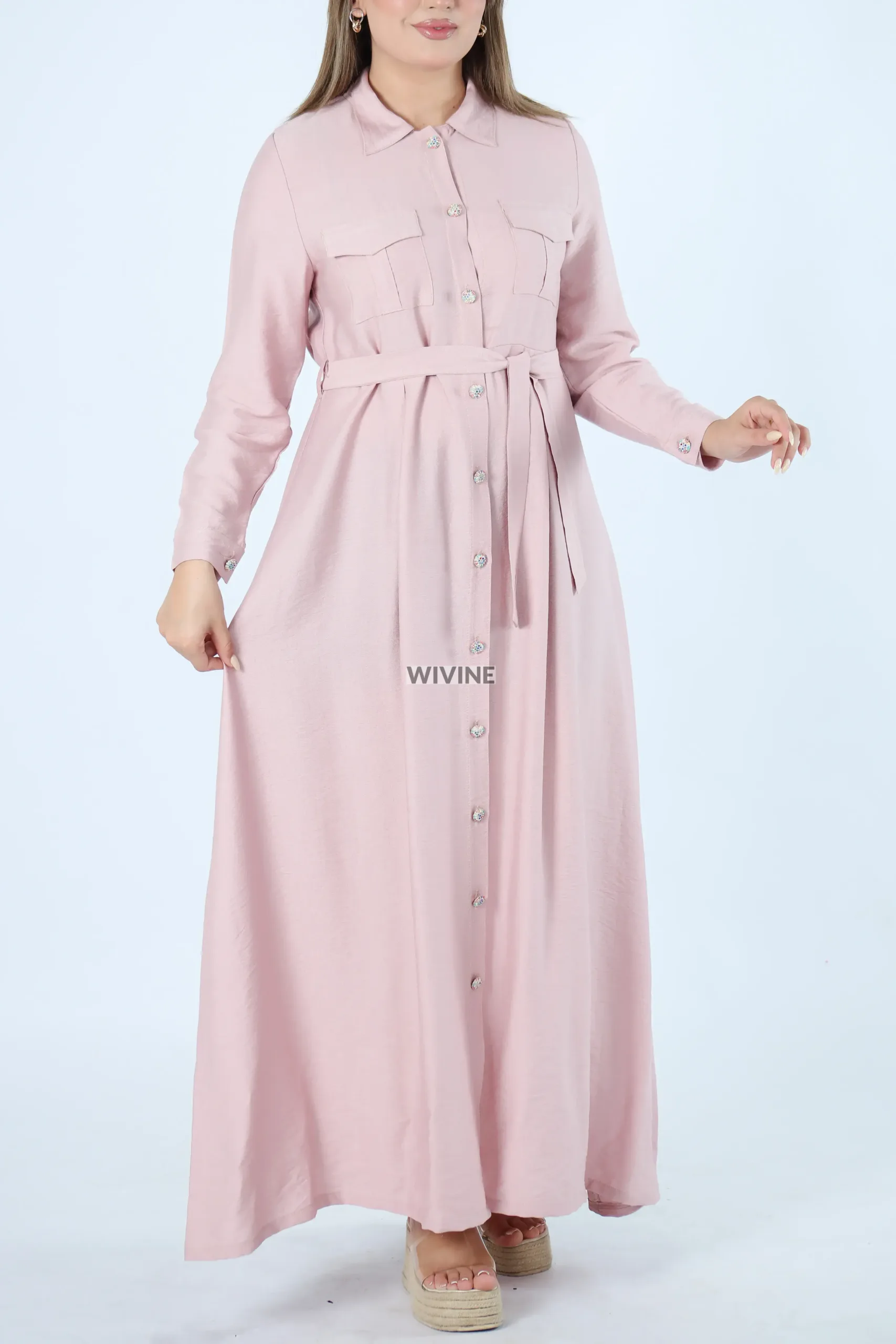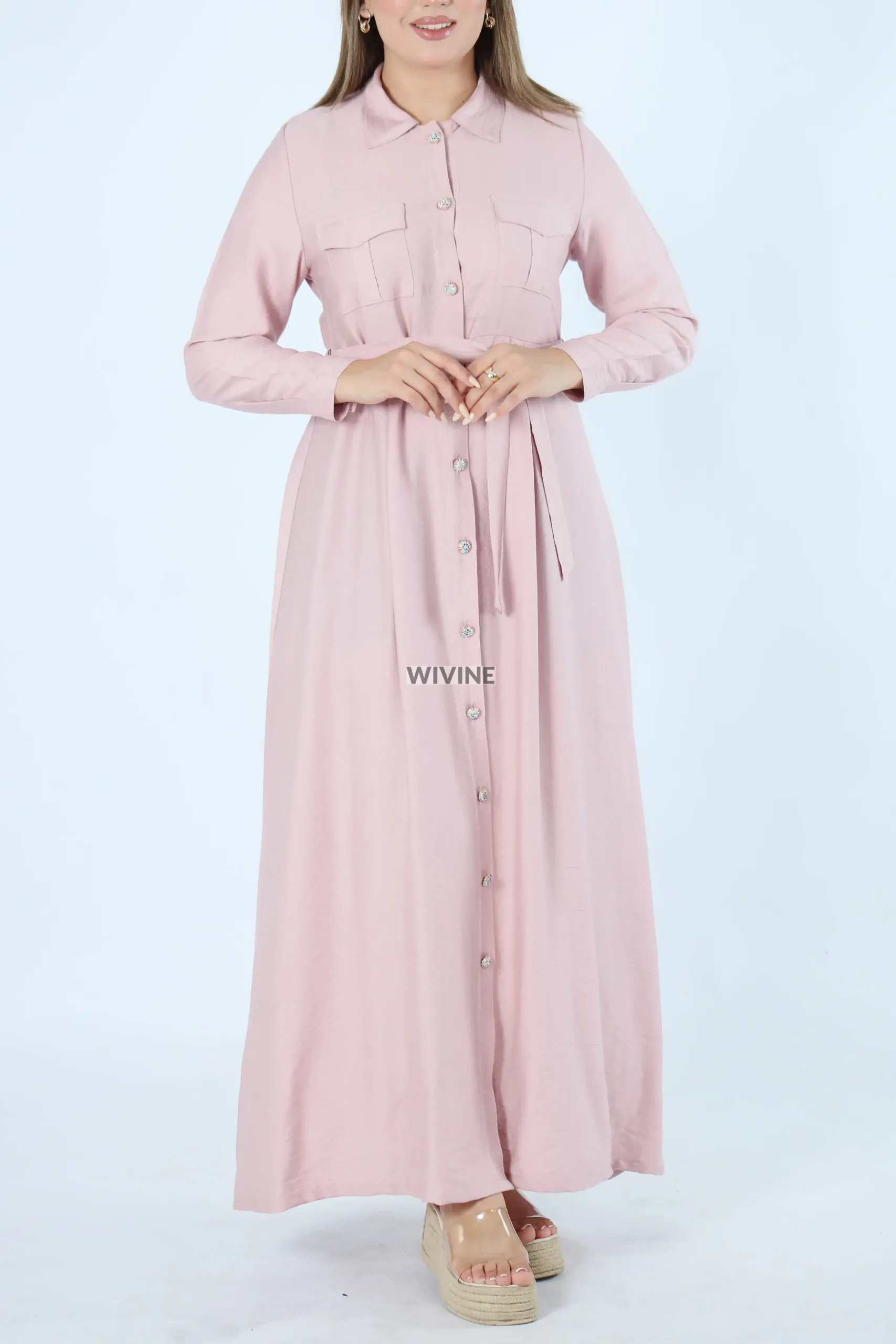 Robe chemise longue avec ceinture