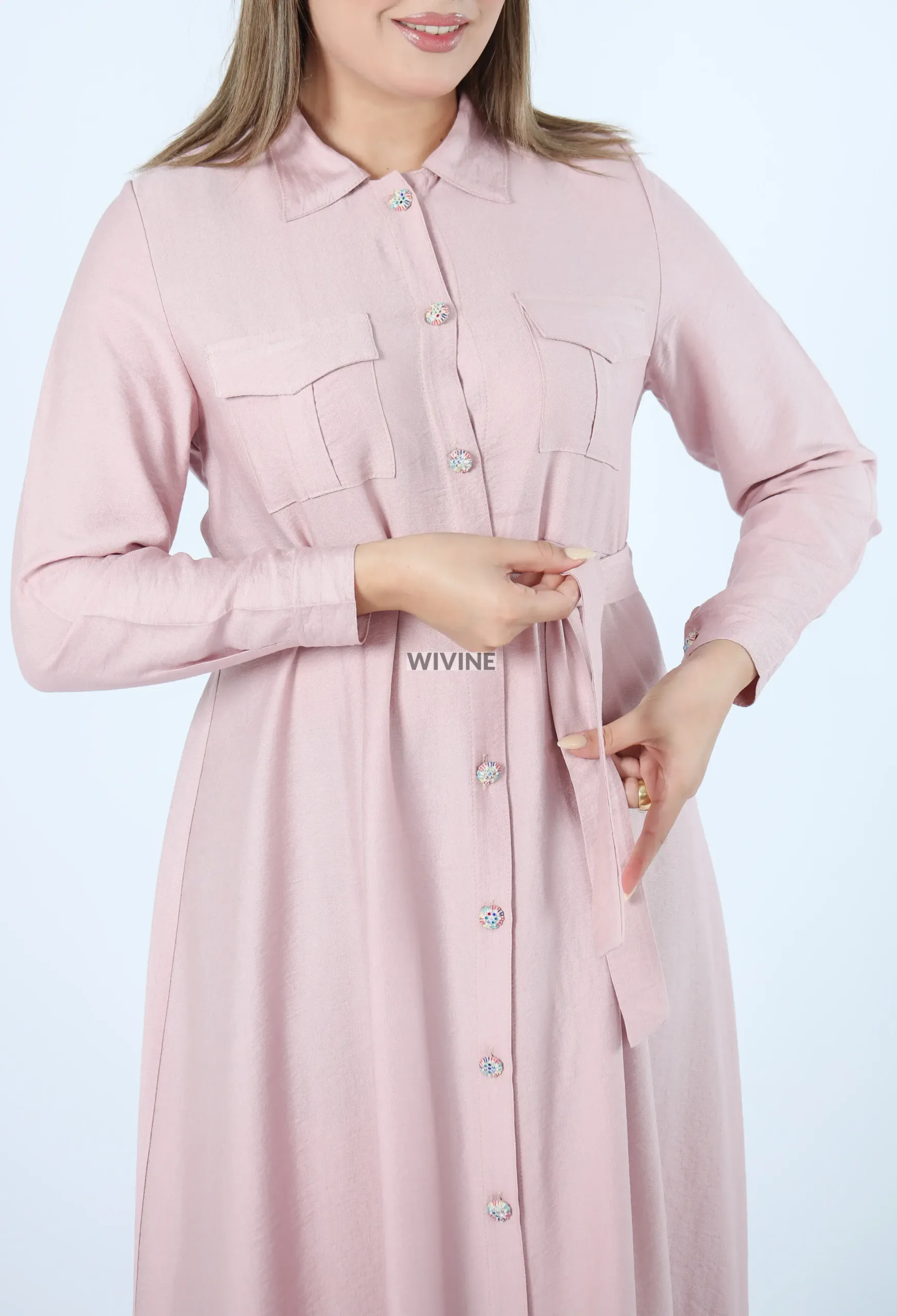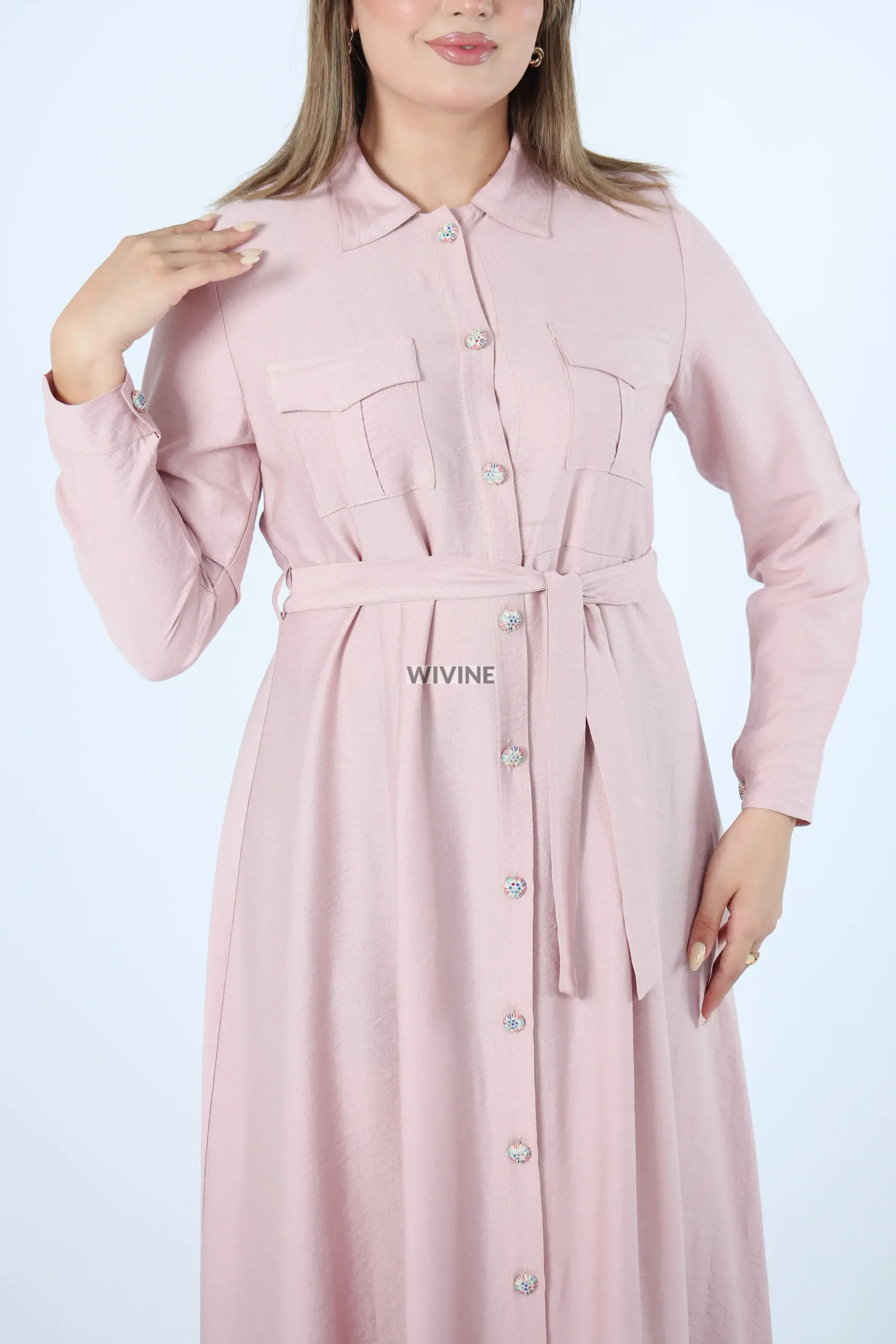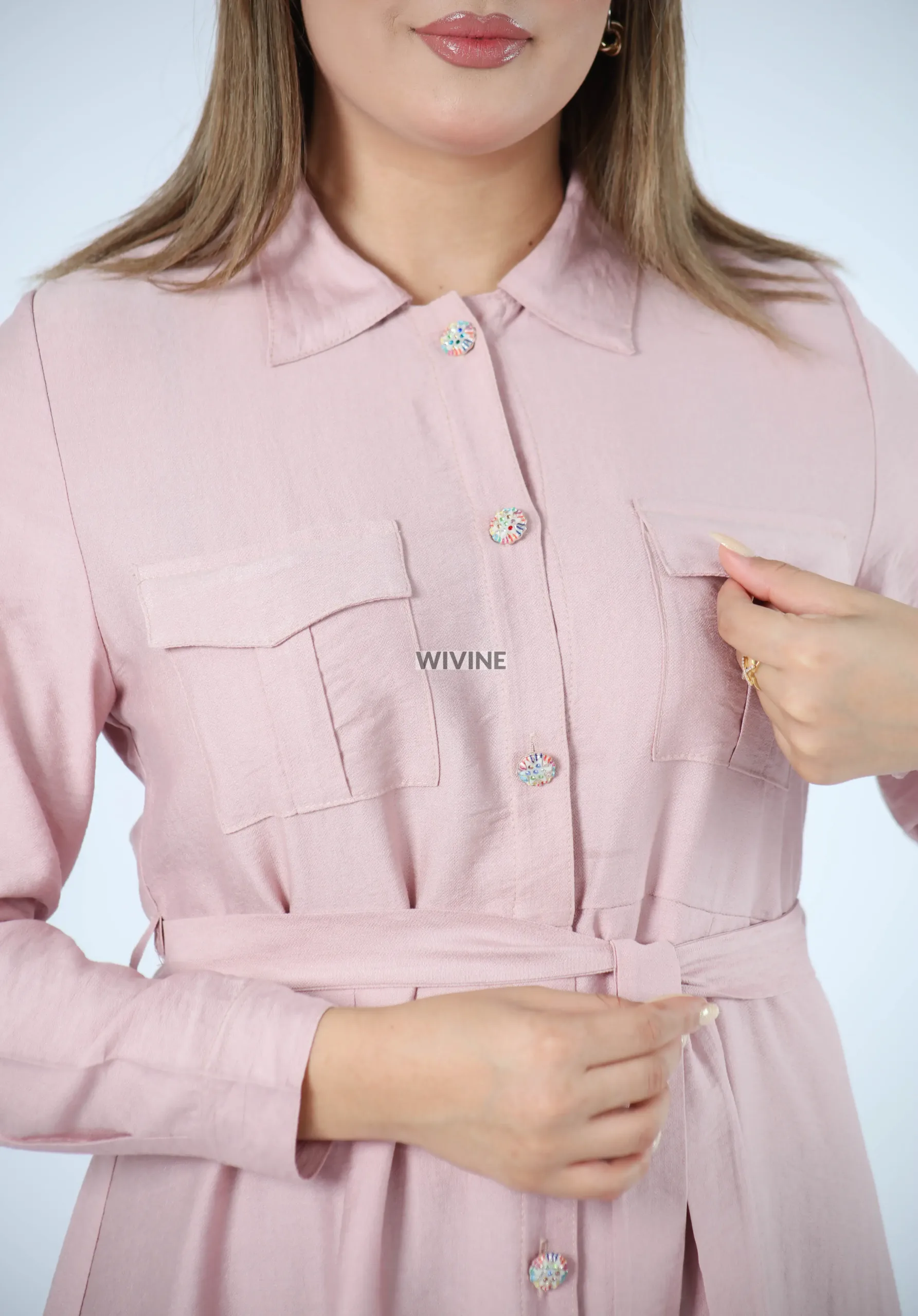 Robe chemise longue avec ceinture